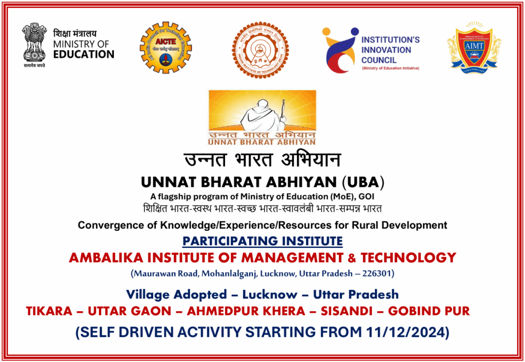UNNAT BHARAT ABHIYAN “Village Adopted TIKARA, UTTAR GAON, AHMEDPUR KHERA, SISANDI, GOBIND PUR”